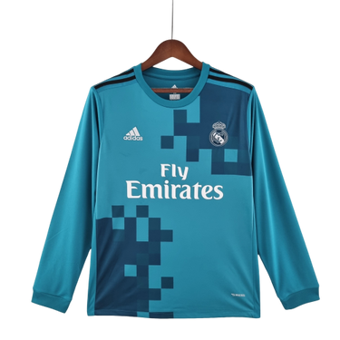 Camisa Retrô Real Madrid II Away 2017/18 Manga Longa Masculino Azul